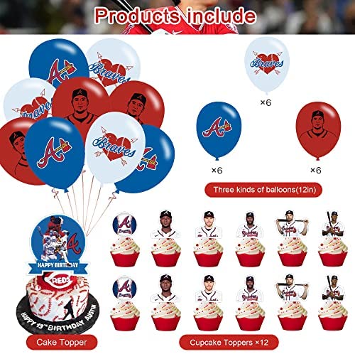 Braves Fanart Party Decorations,Birthday Party Supplies For Atlanta Baseball Team Party Supplies Includes Banner – Cake Topper – 12 Cupcake Toppers – 18 Balloons – 2 Baseball Foils Ballons