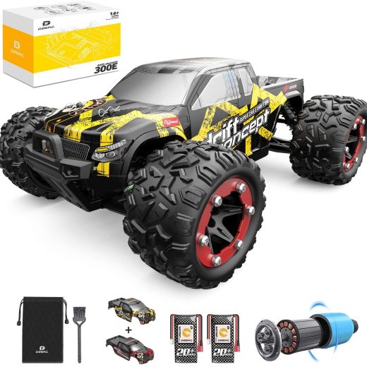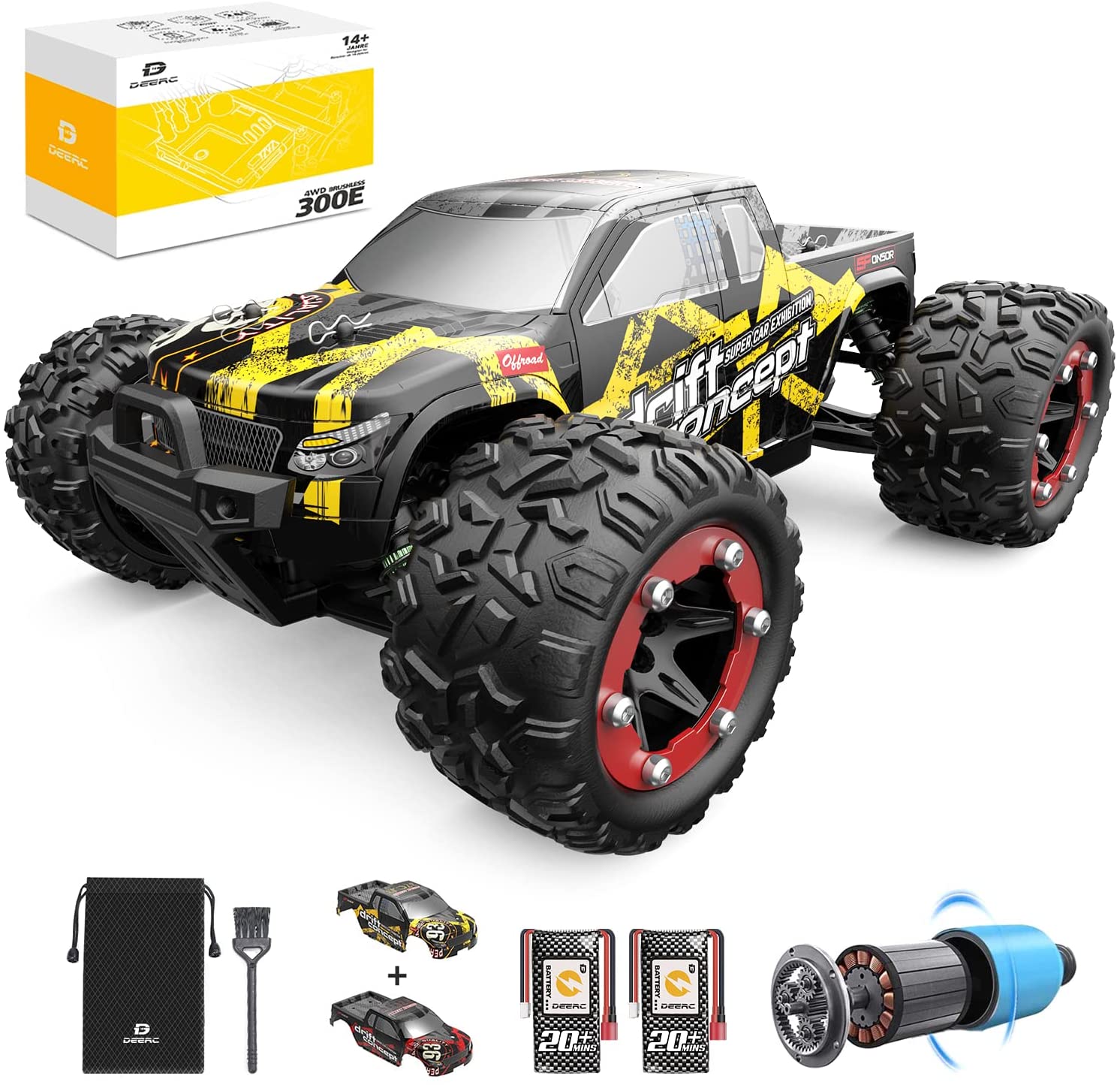 2440 Waterproof Brushless Motor & 25A Brushless ESC Equipped with a strong brushless electric motor, the speed and lifetime of this sandy truck will be greatly increased. The life of the brushless motor is 2-3 times that of the brushed motor, and the power consumption is only 1/3 of the brushed. With the waterproof brushless ESC, you have 8 acceleration, 8 timing options and multiple protection. DEERC 300E High speed monster truck is ready to rip, just dont blackout from excitement.