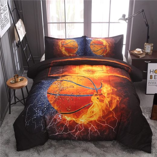 Btargot Twin Basketball and Fire Quilt Set Bedding Sets, 3D Sports Themed Bedding, All-Season Reversible Quilted Duvet, for Children Boy Girl Teen Kids – Includes 1 Comforter, 2 Pillow Sham