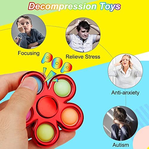 Bubble Pop Fidget Spinner Toys Simple Dimple Popper, Flipping Board Fidget Pop Toys Set for Kids,Pop Fidget Pack Hand Finger Spinners Adults ADHD Stress Relief Reducer Pop Party Favors Supplies