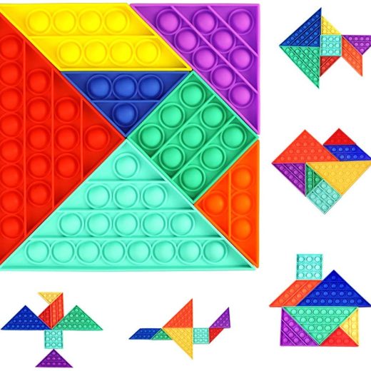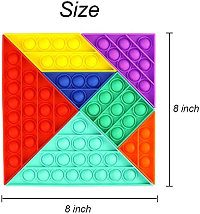 High-quality Silicone This push & pop fidget toy is made of high-quality silicone material, so no need to worry about product safety issues. The Popper toy does not contain harmful chemicals that can cause many health problems. The sensory bubble toy is totally safe for kids, the elderly, and adults Stress RelieverThe Tangram fidget toy can effectively help you relieve anxiety, stress, and depression by pressing it and listening to the pop sound, which gives you a happy and relaxing time Washable and ReusableThe bubble Sensory fidget toy is washable, resistant to abrasion, falling, and extrusion, endlessly reusable Novelty GiftThe Squeeze Popper toy with pleasant bubble sound is the perfect gift for all ages on birthdays or holidays. It is also a home essential for parent-child games, the elderly, children, adults Play Anywhere AnytimeThis squeeze sensory toy is small & light which doesnt take up space, so its easy to carry anywhere and you can play with it in a car, plane, restaurant, camping, office, school, playground