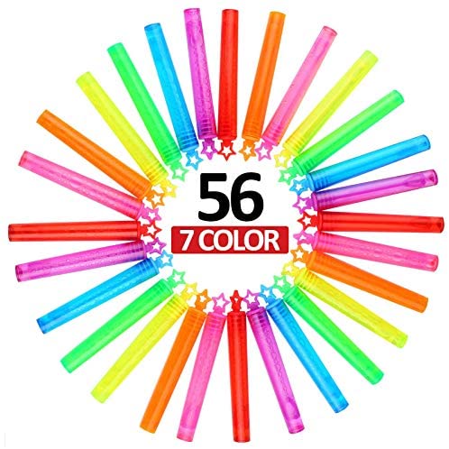 Bubble Wand, 56 Pcs( 7 Colour) Mini Star Bubble Wand Set, Non-Toxic Smelless Bubble Toy for Kids Child Birthday Party Favor Wedding Summer Outdoor Activity Bathroom Bath Toys, 4 inch, by CHIMAGER