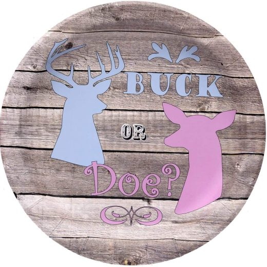 Buck or Doe Paper Plates, 8 Pack, 9-Inch Circle Plates, Party Supplies, Gender Reveal Collection by Havercamp