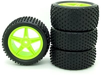 Buggy 2X Front 2X Rear Rubber Tires Green Wheel Rim for RC HSP 1:10 Off-Road Pack of 4