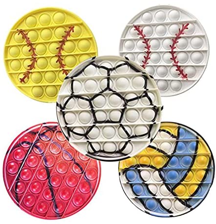 Silicone Press Toy, Round Baseball/Basketball/Volleyball/Football Print Stress Relief Finger Press Game for Boys, Girls Babies constantly exercise …