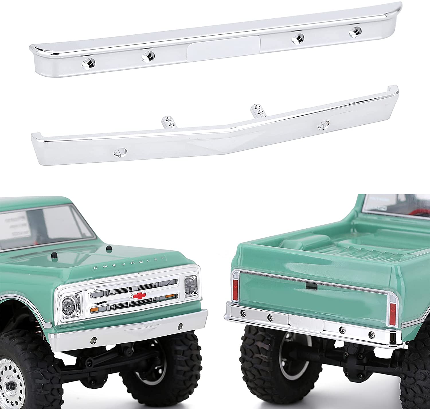 Features: Made of high-quality metal, sturdy and durable Equipped with some screws, easy to install Two color to choice, Black or silver anodized Protect the body shell and improve appearance For RC Crawler Car Axial SCX24 AXI00001 Chevrolet C10 Specifications: Material: Metal Quantity: 1pcs Color: Silver Weight: 8g (Front)and 6g (Rear) Width of Front Bumper: 93mm/3.66inch Width of Rear Bumper: 91mm/3.58inch Suit For: Axial SCX24 AXI00001 Chevrolet C10 Package List: 1 * SCX24 Front and Rear Bumper