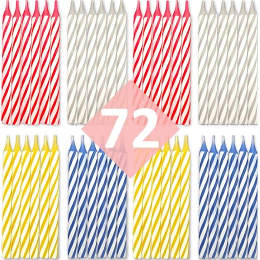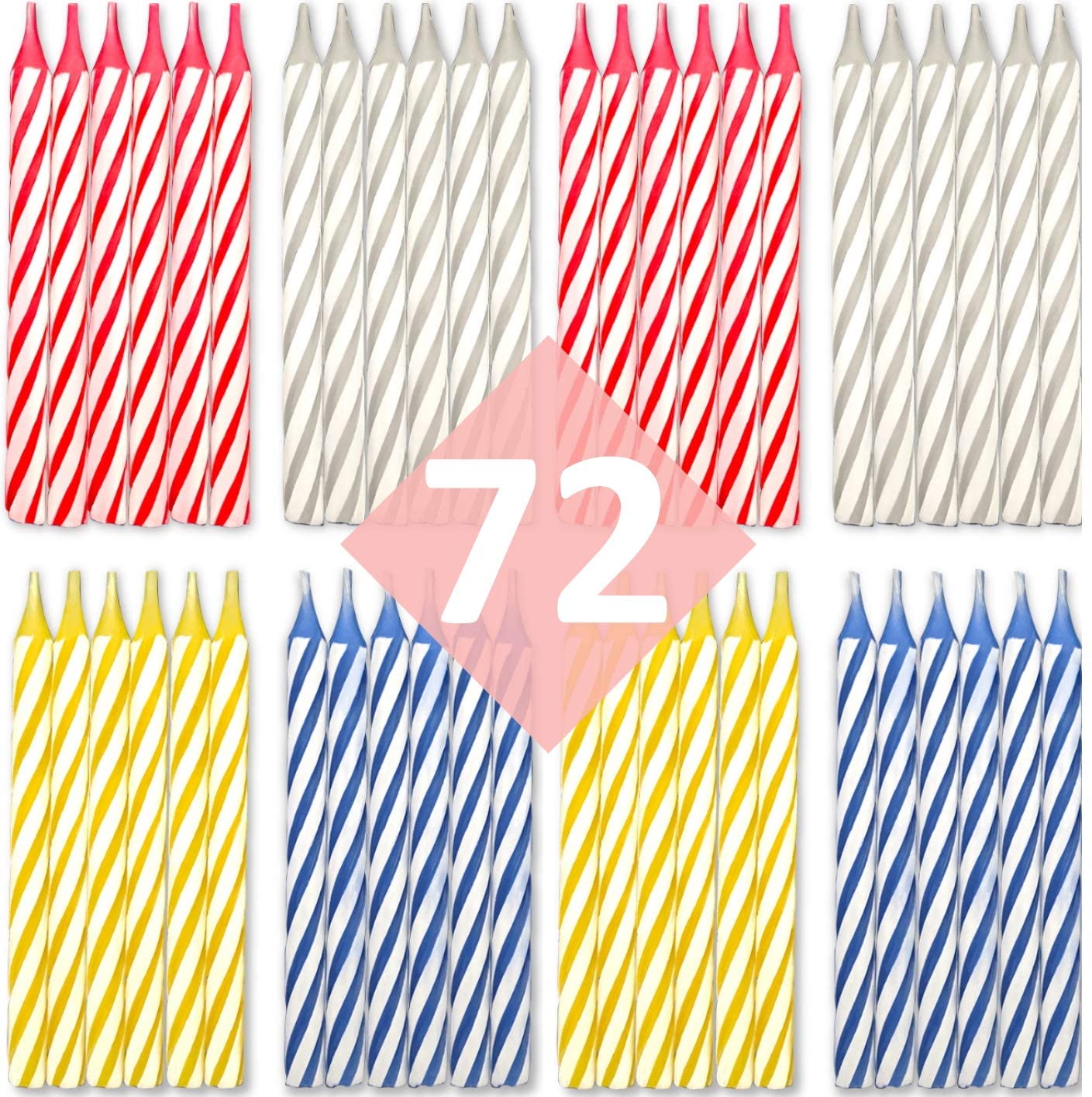 Bundaloo Birthday Candles 72 Pack – Cake Decorations – Colors: Pink, White, Blue, Yellow