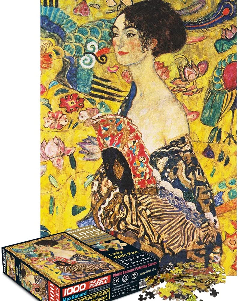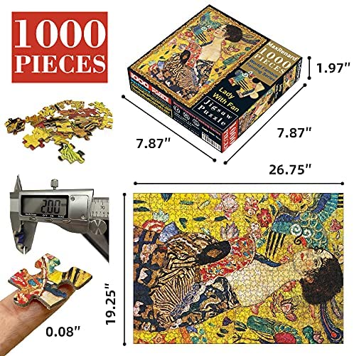 BUSCBEAR Gustav Klimt Museum Art Puzzle 1000 Pieces for Adults Lady with Fan Oil Painting Collection Jigsaw Puzzles Challenge Game Home Wall Decoration