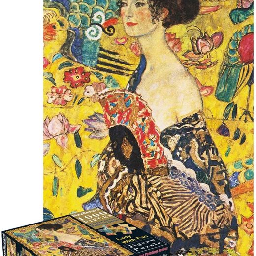 On the puzzle is ” Lady with Fan ”-one of the most famous painting by Gustav Klimt. It contains 1000 pieces jigsaw puzzles in different unique shap…