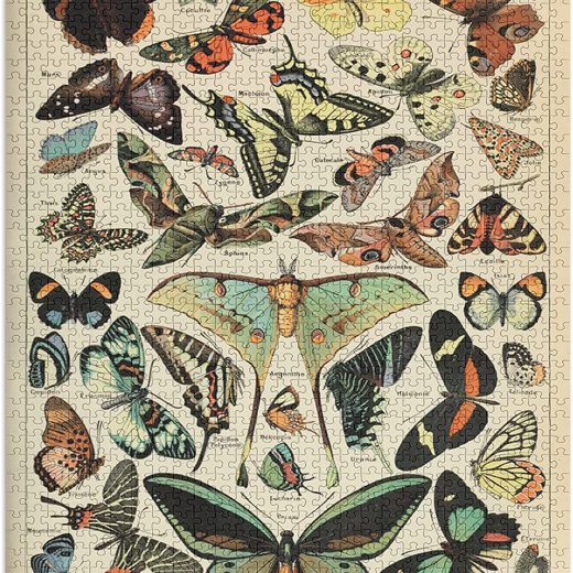 Butterflies, C, Vintage Bookplate, Adolphe Millot Artwork (19×28.5 inches, Premium 1000 Piece Challenging Jigsaw Puzzle for Adults and Family, Made in USA)
