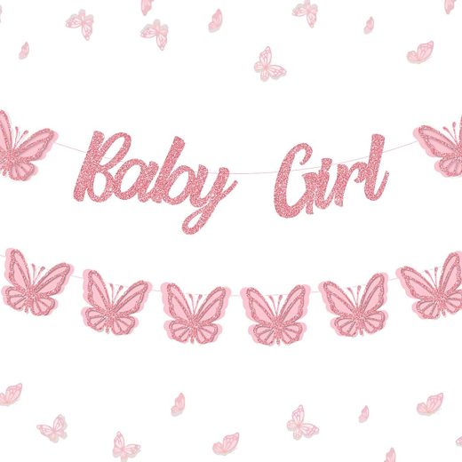 Butterfly Baby Shower Decorations Butterfly Baby Girl Banner Baby Shower Garland Glitter Pink Bunting for Room Garden Party Supplies