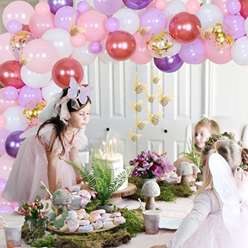 Butterfly Theme Birthday Package: The package includes 40*12 inch latex balloons; 15*10 inch latex balloons; 20*5 inch latex balloons; 1 butterfly happy birthday backdrop; 12 gold butterfly stickers. Balloon Garland Arch Kit: Our butterfly balloon garland arch kit is enough for you to make a unforgettable party, which includes light pink, macaron purple, rose red, white and gold confetti latex balloons. These colorful balloons adds a glamorous atmosphere for your party. Butterfly Theme Birthday Party Supplies: Our butterfly birthday party supplies set includes beautiful butterfly decorative happy birthday backdrop and gold 3D hollow butterfly stickers. These exquisite butterfly decorations kit is perfect for spring butterfly theme birthday party and will bring an unique experience for your birthday party. Warm Tips: Please gently rub the confetti balloon on the dry towel, carpet or your hair to get the static electricity, then shake it slowly to make these colorful pieces stick on the sides of the balloon. Friendly Customer Service: A friendly customer service stands behind our items, if you receive any defective or damaged products, please feel free to contact us, we will help you solve the issue.