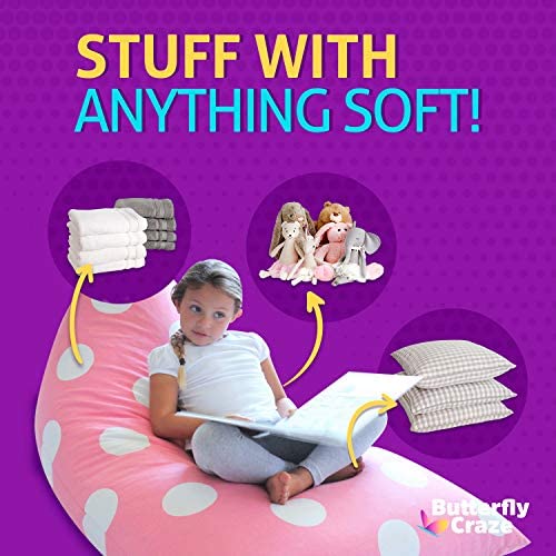 Butterfly Craze Bean Bag Chair Cover (Stuffing Not Included) u2013 Toddler Toy Organizer u2013 Fill with Stuffed Animals to Create a Jumbo, Comfy Floor Lounger Kids Bedroom u2013 Light Pink Polka Dots