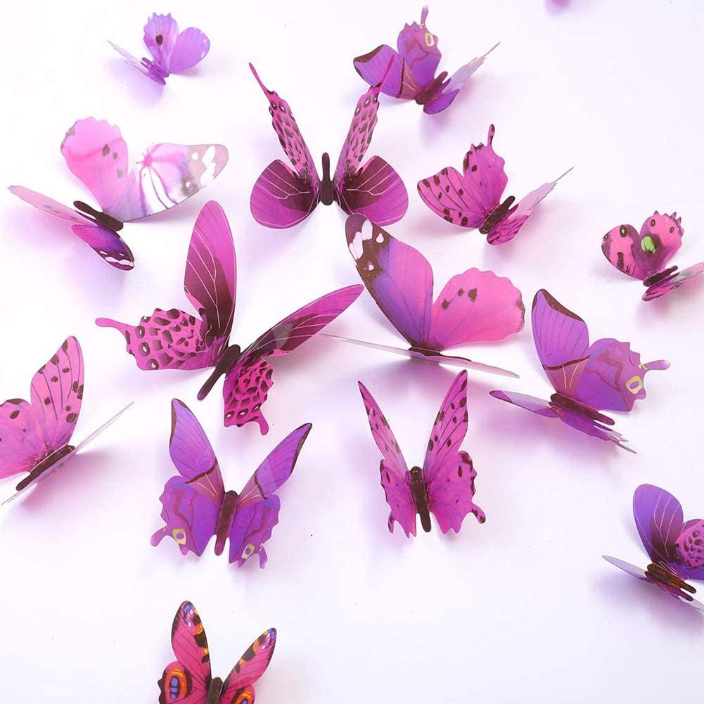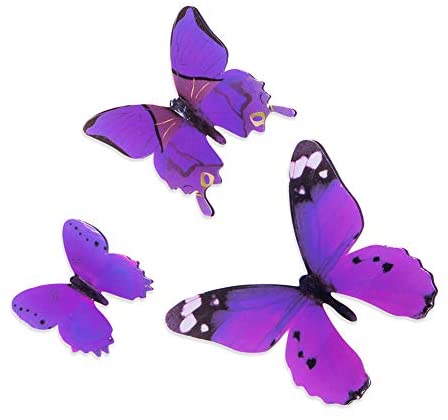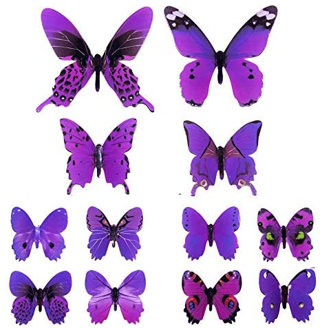 Butterfly Wall Decals,24Pcs 3D Butterfly Removable Mural Stickers Wall Stickers Decal for Kids Girls Baby Women Bedroom Bathroom Living Room Decor (Purple)