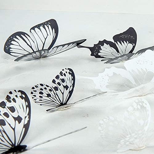 Butterfly Wall Stickers, 36 PCS 3D Black and White Butterfly Stickers with Adhesive, Crystal Butterflies, Removable Art Mural for Baby Kids BedroomQyeaber