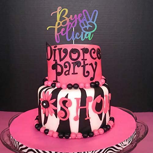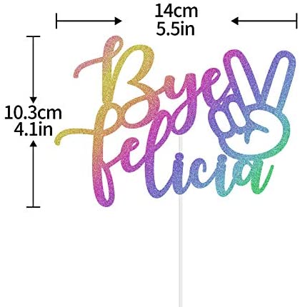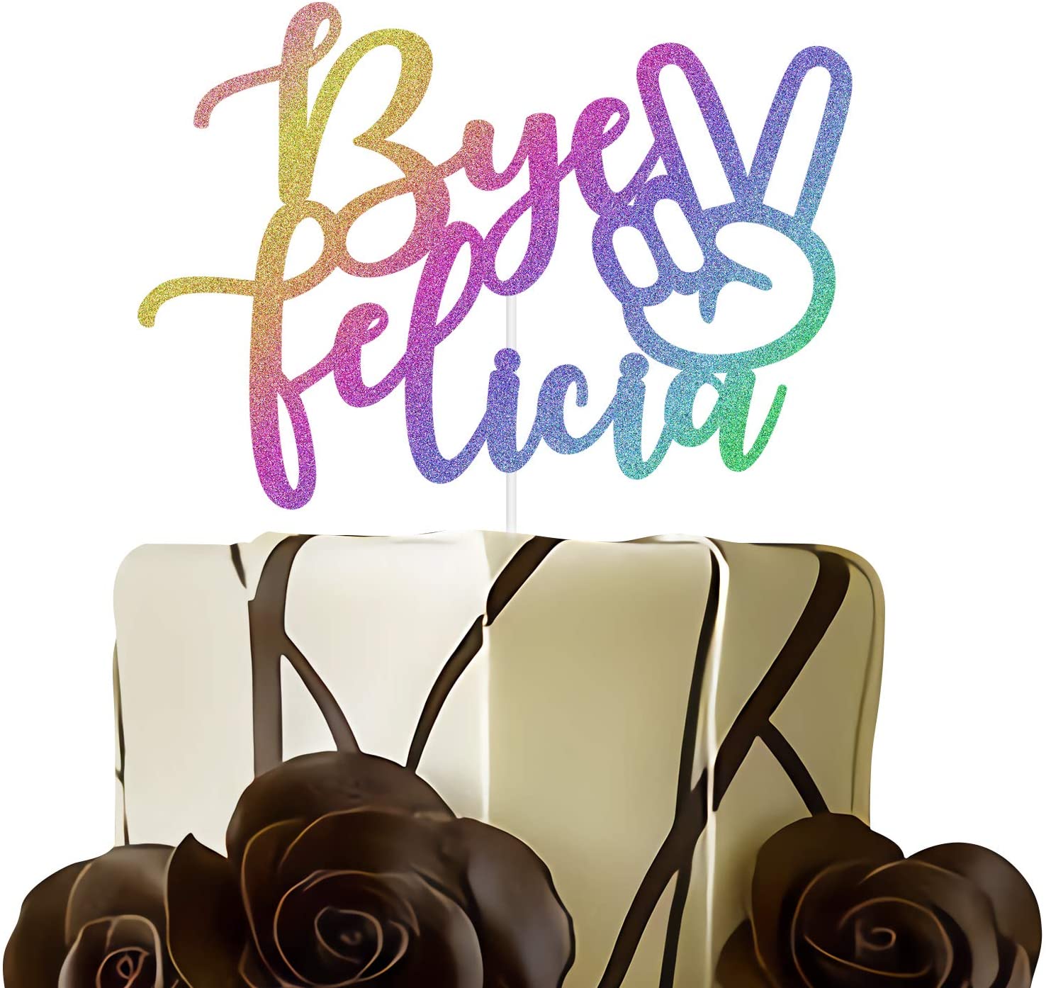 Bye Felicia Cake Topper – Single AF, Graduation ,Retirement Cake Topper – Good Bye Party Cake Decor – Farewell /Relocation /Job Change /Divorce Party Decorations (Double Sided Rainbow Glitter)