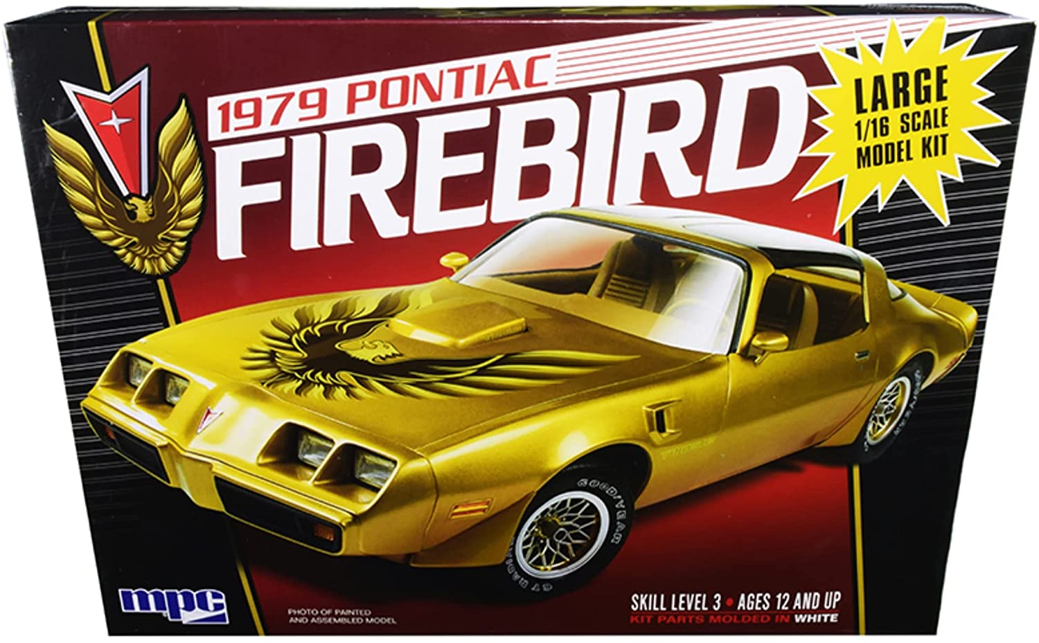 MPC 862 1979 Pontiac Firebird. 1: 16 Scale Plastic Model Kit. Requires Assembly. Authentic Detailing Inside and Out. Removable T-Top Roof. Posable Front Wheels. Opening Hood and Doors. Optional Custom Seats, Headers, and Side Pipes. Authentic 6. 6 Liter Engine. Detailed Chassis and Suspension. Firebird Decals in Three Colors. Waterslide Decals. Molded in White. Skill Level 3. Ages 12 and Up.