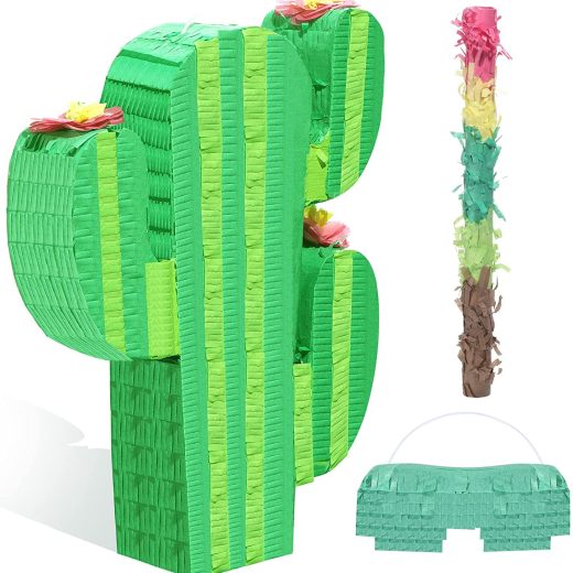 Features:This handcrafted cactus pinata set will be the sensation of your birthday and various celebrations. You can fill up this pinata with stuffers and leave it hanging on a hook or rope to start the fun with your family and friends.The cactus pinata is suitable for people of all ages, both teens and adults could enjoy breaking it. Lets share the fun with your loved ones now.Specifications:Material: cardboardColor:as shown in picturesSize:Cactus pinata: approx. 16.5 x 11.8 x 3.2 inchesBat: approx. 13.8 x 1 inchesBlindfold: approx. 5.9 inches in lengthPackage includes:1 x Cactus pinata (fillers not included)1 x Blindfold1 x BatWarm notes:Please stay over 20 feet away from the individual swinging the stick for your own safety.Please allow slight color difference due to different screen displays.Please allow slight errors on size due to manual measurement.