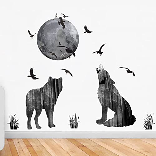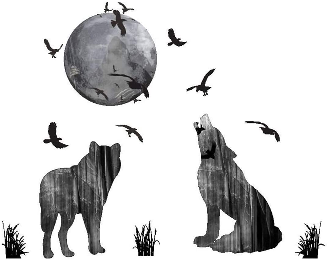 Cafurty Wall Stickers Wolf and Moon Wall Decor Decal Art Animal Murals Removable PVC DIY Wall Decoration Paper Poster for Bedroom Kitchen Living Room Nursery Rooms Offices