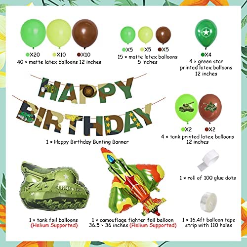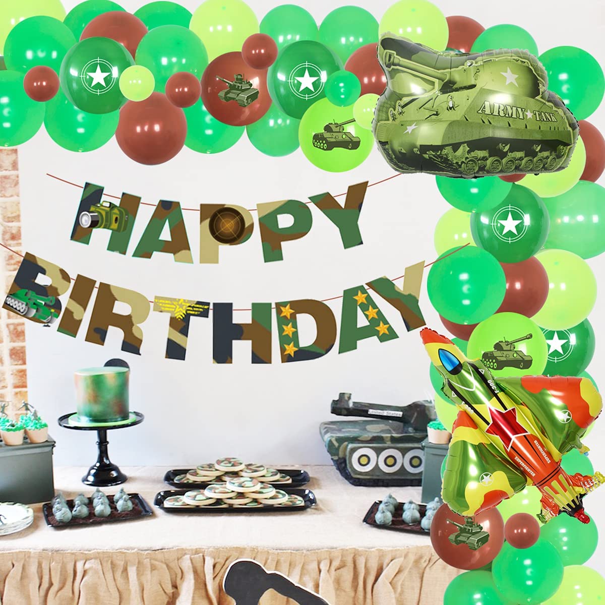 Camouflage Birthday Party Decorations, Military Balloons Garland Arch Kit, Fighter Tank Foil Balloons, Happy Birthday Banner for Boys Girls Army Theme Party Supplies
