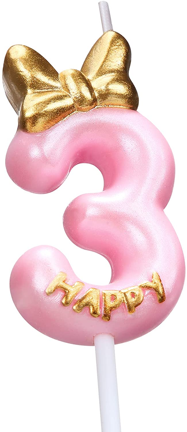 What you will receive: come with 1 piece of number 3 cake numeral candles, pink design with golden embellishment brings fun and bright decorations …