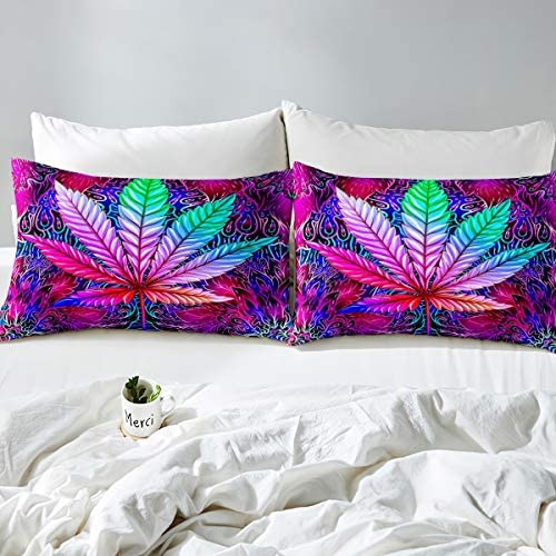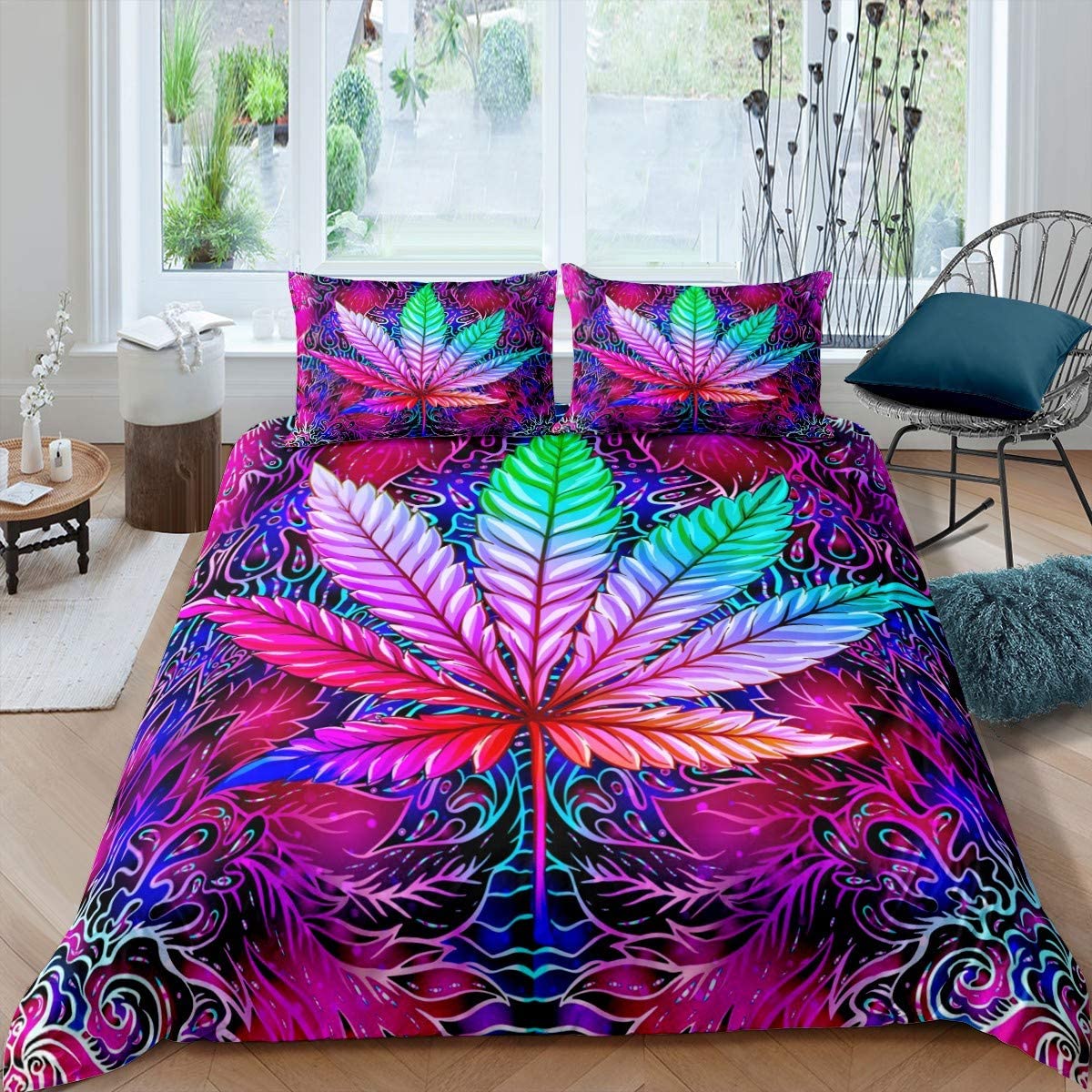 Cannabis Leaves Duvet Cover Set Purple Marijuana Leaf Bedding Set for Kids Girls Women Adults Boho Psychedelic Comforter Cover Set Marijuana Weed Botanical Bedspread Cover 3Pcs Boho Trippy Quilt Queen