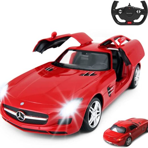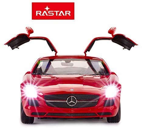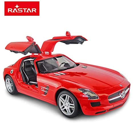 Official licensed by Mercedes; 1/14 scaled back on real Mercedes-Benz SLS AMG car; Mercedes toy car measures 13.6” x 5.3” x 5.3”; Color comes in red.