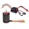 Features: F540 Brushless Motor: CNCMachined 6061T6 Billet Aluminum Heatsink Can High Purity Copper Windings Maximizes Efficiency Precision balanced rotor, smoothness for best reliability and maximum RPM Universal fit, fits most of 1/10 rc cars 60A Waterproof ESC: Specially designed for RC car, water-proof and dust-proof for all-weather races. Excellent start-up, acceleration and linearity features. The strong resistant current capability, excellent heat dissipation. Multiple protection features, widely compatible with for 1/10 RC car Notice This 60A ESC is best to use 2S battery, please do not use this 60A ESC together with 3S Battery or above 3S battery to avoid short circuit!! Specifications: Motor: Watts: 900W Max voltage: Max Amps: 75A KV(RPM/Volt): 4370KV Max RPM: 50000 Plug type: 4mm golden banana plug Shaft length: 15mm Shaft diameter: 3.175mm Diameter: 36mm Length: 50mm Weight: 180g ESC: Cont/Burst Current: 60A/320A Motor Type: Sensorless brushless motor Suitable brushless motor: =9T Resistance: 0.0007ohm Battery: 2S Lipo/ 4-6cells NiMH BEC Output: 5.8V/3A(switch mode) Diamension:50 X 35 X 36mm (1.97 x 1.38 x 1.38in) Instuctions 1. Connect BEC wires with the receiver 2. Connect motor wires with ESC 3. Turn on the transmitter 4. Connect battery pack with ESC then switch on the ESC. 5. When the connection of motor and battery is finished, the motor emitsBeep-Beeptone. 6. When the throttle stick is in the neutral position, the motor re-emits Beep-Beeptone. 7. The ESC is workable. 8. please read product manual(ESC) Package 1 X F540 4370KV Brushless Motor 1 X 60A ESC 1 X Program card 2 X product manual