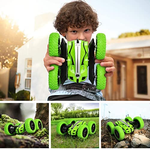 Car, 4 Wheel Drive Stunt Car Toy for Kids, Hobby RC Crawlers, Double Sided Rotating 360°Remote Control Car, Dual-Color Headlights Blue/Red/Green, (K-02)