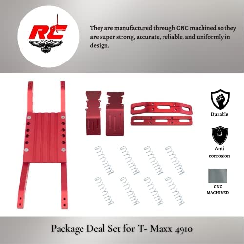 Car Aluminum Parts and Accessories for Tmaxx Classic 2.5 or 1.5 Original 4910 Red Anodized Aluminum Bottom Chassis Braces Including Center Skid- RC Car Upgrade Parts