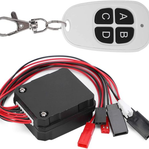 Feature:1. PREMIUM AND CONVENIENT: Made of high-quality materials, strong and durable, easy to install and firm to use.2. EQUIPPED WITH: Four-channel wireless remote control, adding two sets of headlights control switch to solve the problem of insufficient channels in the remote control.3. MULTIPLE MODES: Switch C/D channel with flash mode to provide more fun. Click to turn on the light and press the second button to turn on flash mode.4. DELICATE AND EXQUISITE: Cool and beautiful appearance, light weight, is the perfect accessories for remote control car.5. EASY TO OPERATE: Wireless remote control makes it easy and convenient to use and operate.Specification:Condition: 100% NewItem Type: RC WinchMaterial: Metal, plasticColor: Black and whiteReceiver: 6-11V(generally 6V)Working Voltage: 5-7.4VControl Distance: About.20mController Size: Approx. 46 x 41 x 22mm / 1.8 x 1.6 x 0.9inController Line Length: Approx. 20cm / 7.9inSize of Remote Control: Approx. 58 x 34 x 10mm / 2.3 x 1.3 x 0.4inRemote Control Battery: 27A 12V 160mAh button battery (built-in)Fitment: Fit for TRX4 SCX10 D90 1/10 RC car Function: A winch input wire, B winch output wireC Light switch (with flash)D Light switch (with flash)Package List:1 x Remote Control 1 x Controller 1 x Key Chain Note:1. Please allow 1-3mm error due to manual measurement. Thanks for your understanding.2. Monitors are not calibrated same, item color displayed in photos may be showing slightly different from the real object. Please take the real one as standard.