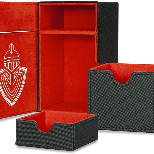 PERFECT CARD STORAGE – The best premium quality PVC-free deck locker. Comes with a hard cover back and front, magnet closure and anti-scratch and anti-stain material. REFINED DESIGN – Holds up to 100+ sleeved cards and up to 8 dice. A total of 8 magnets keep the compartments closed when you want them deck locker to be secured. The soft interior and tough outer material make the deck locker feel great and look very impressive. SIZE – The deck locker measures 144 x 88 x 93 mm which makes the Card Guardian deck locker fully compatible for storing the majority of Collectible Cards.