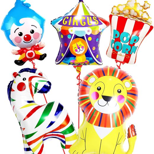 COMPLETE SET FOR CARNIVAL PARTY DECORATIONS : Carnival Decorations is an explosion of colors and happiness. This circus balloon set bring the spirit of the carnival theme decorations . This adorable carnival balloons No need to go looking we have got you a deal where you get all the colorful animal, clown and stage tent balloons for your Carnival Theme Party Decorations. HUGE PERFECT SIZE CIRCUS PARTY DECORATIONS : Carnival Balloon Arch bring out the child in everyone enjoy this spirit with this circus party balloon for clown birthday party decorations with spirit of summer nights and ferris wheel lights that comes in the pack of 5 -Circus Tent Balloon – 30×21 Inch, clown balloons -24×18 Inch, popcorn balloon – 26×18 Inch, lion shape balloon – 27×25 Inch, Horse shape balloon – 34×20 Inch carnival balloon for circus carnival themed party baby shower supplies. REUSABLE – CARNIVAL THEME BALLOONS : These sturdy carnival birthday party decorations make your Child happy by bringing the circus theme party decorations in home. We are 100% sure with the quality of these circus theme party balloon and clown balloon set made from Grade A quality material and can be reused for years. The circus theme balloons are made to float with helium! -It can easily hooked through through the holes on the tabs. BUY WITH CONFIDENCE | 100% GUARANTEED SATISFACTION ON THIS CIRCUS BIRTHDAY DECORATIONS : We are confident with this carnival balloon bouquet set quality and durability of these adorable joker balloons for clown party made from if you are not satisfied with carnival foil balloons for clown decorations for party we give you full refund. MULTIPURPOSE CARNIVAL BALLOONS FOR PARTY DECOR : Great gift for circus, Mexican theme, Christmas, kids party, birthday party, brazilian carnival party decorations, Fiesta party decoration. Balloons Carnival set Provide your party a perfect display and make your party full of joy.You can stick them on the wall, window or door; You can let them suspend in the air; You can even place them on the bed or floor.Nice gift and toy for kids.