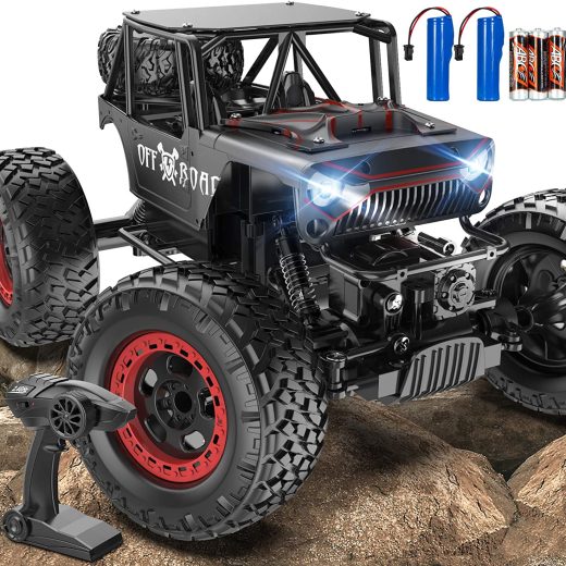 RC cars 1:12, this rock crawler has the performance of all Remote Control Monster Truck Large tires and high-strength shock absorbers enable this Rc rock crawler to run on any surface. The real suspension allows the crawler to easily deal with rocks. The dual-engine four-wheel drive provides excellent performance and can easily overcome any terrain.