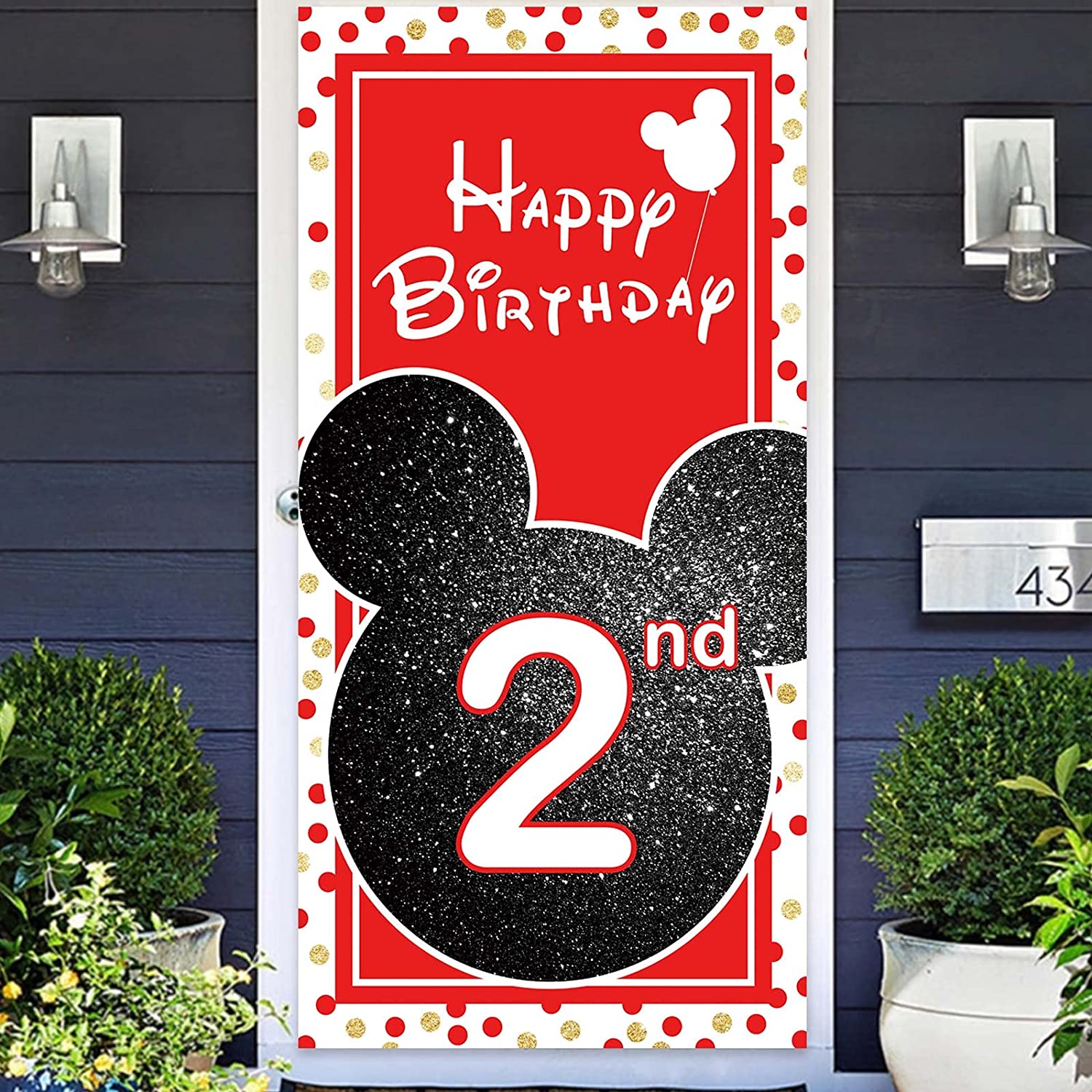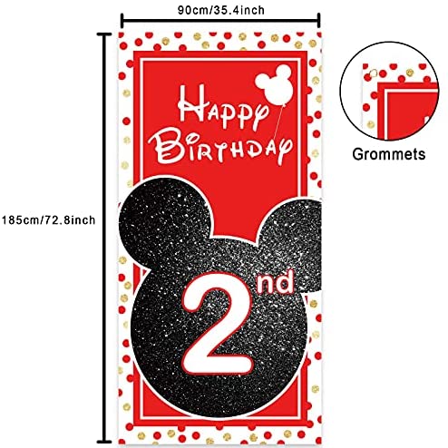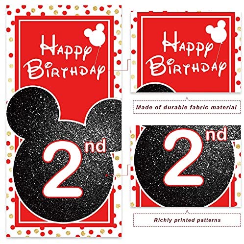 Cartoon Black Red Mouse Happy 2nd Birthday Photo Banner Backdrop Background Backdrop Oh Twodles Theme Decor for Boy Girl Princess High Chair Birthday Party Baby Shower Supplies Decorations Favors