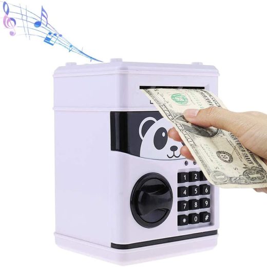 It’s fantastic piggy bank, compared with the other regular one: You put the banknote to the slot and it’ll ‘eat the money automatically and save for you. Kids will absolutely love to do it over and over again! 100% Safe MaterialMade of 100% safe ABS plastic and electronic components. Body is made of environmentally friendly anti-fall material, which is strong and greatly extending the service life. You can rest assured to present it to the children, boys and girls. Besides, on important holidays such as Christmas, Thanksgiving, Birthday, Fathers Day, Mothers Day, and the school season, your kids can use their savings to buy gifts for themselves, friends and parents. er is too old or too soft) Automatic Money Scroll & Coin BankThere are two saving ways: 1. When you put the paper money on the scroll, it can be rolled into the kids atm bank machine automatically. 2. There is a coin slot on the top to put coins to save money. It can store 600 coins or 100 banknotes, really help improve children’s financial awareness, and let your childs develop the best habit of saving money. Easy to UseRotary Switch. Enter the correct password then the light turns green, the ATM can be opened. The default password is 0000, you can change to another 4 digits password. Powered by 3 x AA Batteries ( Not included ). Ideal Gift for KidsThis piggy bank can provide exquisite gifts for children, perfect as a Birthday gift, Thanksgiving gift, Christmas gift, Party gift, Easter gift and so on. Its much fun for kids to save their money for toys and candy. Your kids will learn the value of a dollar as they discover how rewarding it is to save. Use it to help them develop a great habit of saving money.