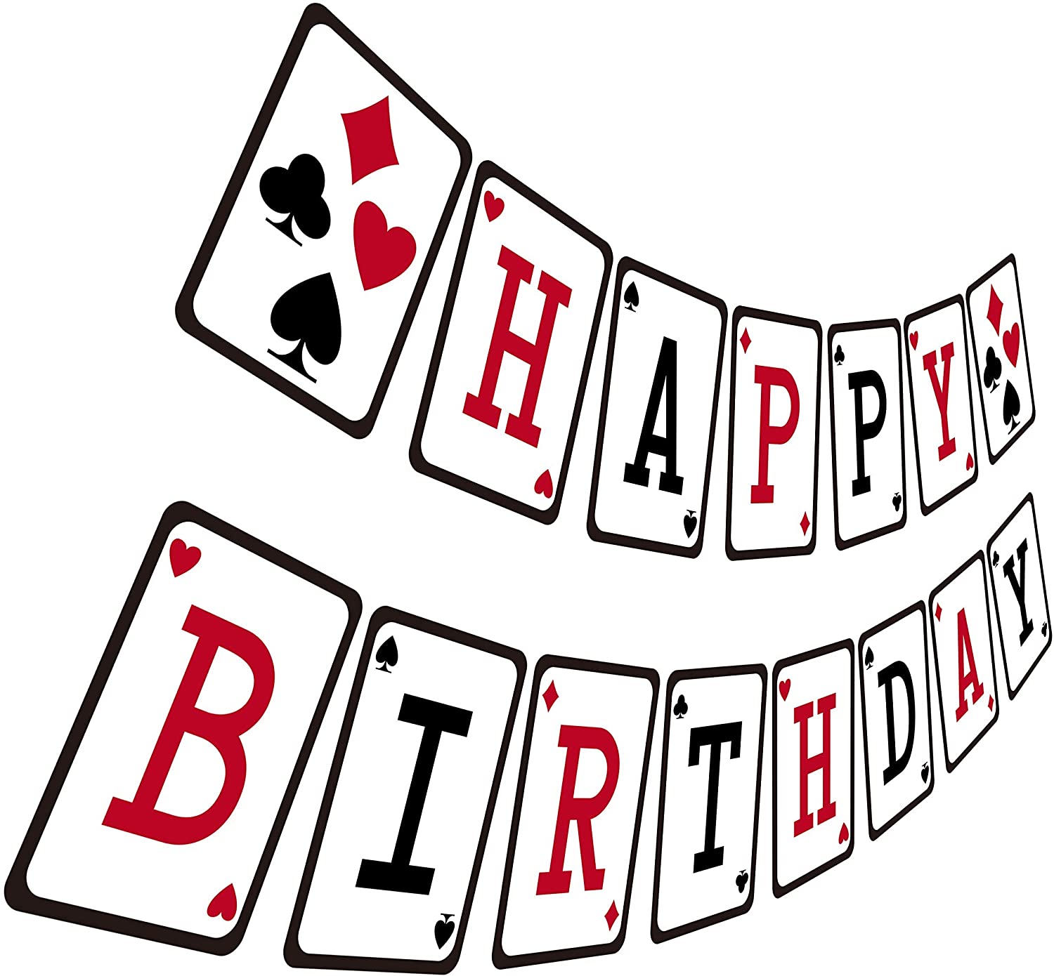 Casino Birthday Banner, Casino Night Poker Happy Birthday Sign, Adult Red Black Bday Party Bunting