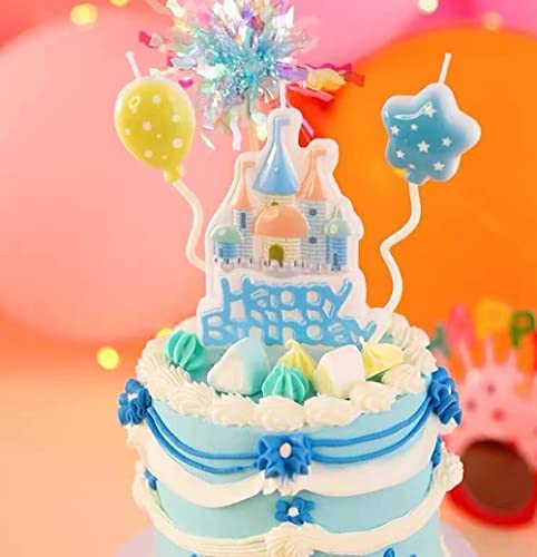 Castle Happy Birthday Candle Set,Fairy Tale Theme Baby Kids Children Happy Birthday Candles,Party Supplies,Cake Decoration (Blue)