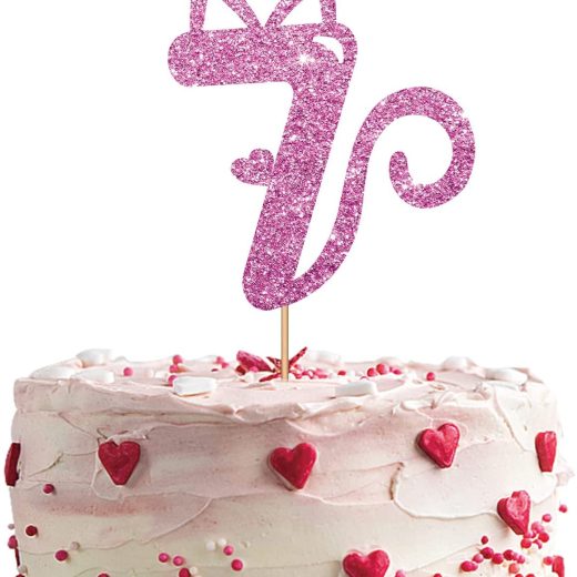 Cat One Cake Topper, Number 1 Cake Topper for Baby Girl, Kitty Happy 1st Birthday Party Supplies, Pet Cat One Year Old Party Decoration – Pink Glitter (7)