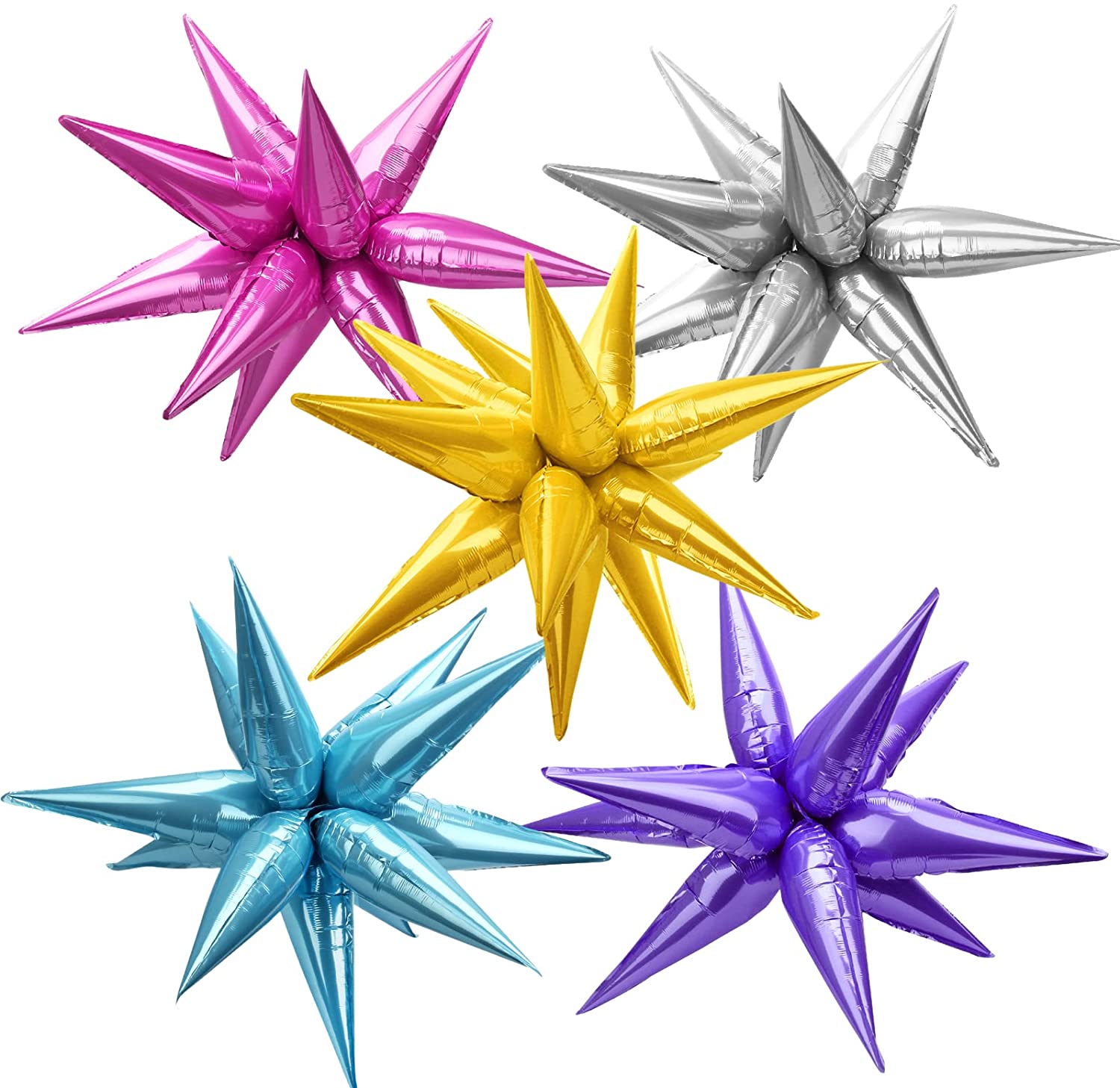 Catcan 60 Pcs Foil Cone Balloons 12 Point Star Balloons Large Explosion Star Foil Balloons Colorful Starburst Balloon Explosion Star Mylar Balloon for Wedding Birthday Party Valentines Day Backdrop