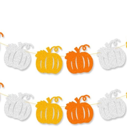 CAVLA 2 Pack Glittery Pumpkin Banner Fall Thanksgiving Banner Garland Autumn Harvest Pumpkin Decorations Thanksgiving Day Party Decor for Birthday Baby Shower Bridal Shower Pumpkin Party Supplies