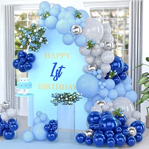 CboDeco Navy Blue Macaron Blue Metallic Sliver Grey Balloon Arch Garland Kit, 168pcs DIY Balloons Kits for Boys Birthday Party Supplies Baby Shower Wedding Graduation Party Centerpiece Backdrop Engagement DIY Decoration Supplies