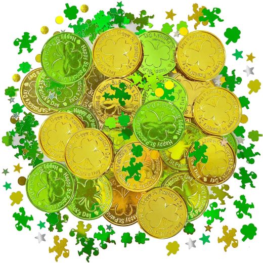 Unique St. Patricks Day Shamrock Confetti and coins for St Patricks Day Decoration! You can spread them on tables to add ambiance to the party, sprinkle them on the floor. Or use them for scrapbooks or crafts, as fillers for gift boxes, clear bottles, or as decorations for cards, letters, or invitations to add festival atmosphere. What you will get: Bulk Package includes 0.5 Ounce/15 Grams per pack, three packs in total, and 30pcs of Lucky coins. Total is 2.6oz. Hope you and your friends can enjoy your party!