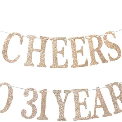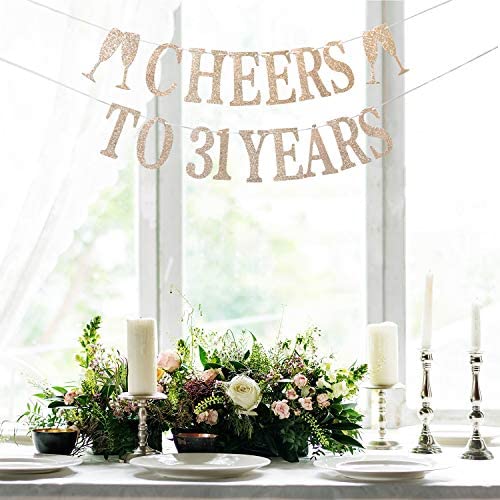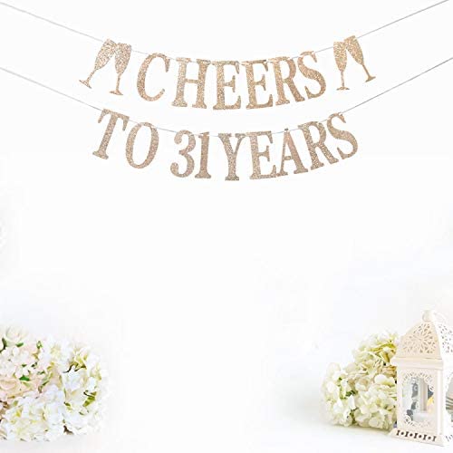 Champagne Gold Glittery Cheers to 31 Years Banner – Happy 31st Birthday Banner – 31st Birthday Party Decoration Supplies