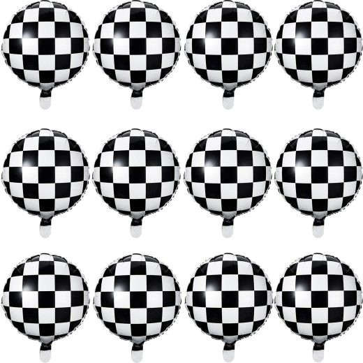 Checkerboard Balloon Aluminum Foil Balloon Black White Checkered Balloon for Racing Themed Party Decoration Supply, 18 Inches (12)