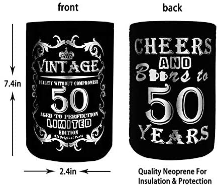 Gifts 50th Birthday Can Cooler sleeve – birthday 50th is a big and memorable event in life of every man and we will help you to celebrate 50 birthday with your family, Colleagues and friends in a unique way Delighting 50th birthday gifts sleeve your 50th birthday party attendees, This premium 50th birthday can sleeve are the perfect 50th birthday party favors to take the memorable 50th birthday event to the next level. 50th party decorations – Our package contains 12 Black and Silver Cheers to 50 Years Can Coolers! It has 6 black and Silver can 50th birthday Can Coolers and 6 black and Silver 50th birthday gifts bottle cooler. Make it look to decent and unique among other people on 50th Birthday party. 50th Birthday Sleeves are made of a thick neoprene. DOUBLE SIDED PRINT- Each 50th birthday Can Cooler has a decorative Cheers to 50 Years writing on BOTH sides and Vintage Quality without compromise 50 aged to perfection limited edition all original parts writing, Fits standard 12 oz and 16 oz, 50th Birthday Sleeves cans or bottles, Keeps your beverage cool and your hands dry, Very classy and stylish that will get happy of all guests. Unforgettable 50th Birthday party gift:It says on our Can Cooler Vintage Quality without compromise 50 aged to perfection limited edition all original parts elegant design with black and Silver 50th birthday party elements, Your 50th birthday party will be an impressive event supplies VeryMerryMakering is a registered trademark in US PATENT AND TRADEMARK OFFICE. priority is our customer’s happiness, We sincerely hope our customers can enjoy a pleasant shopping experience, Please contact us if you are not satisfied with our products 50th Birthday Gifts, We will you 100% money back