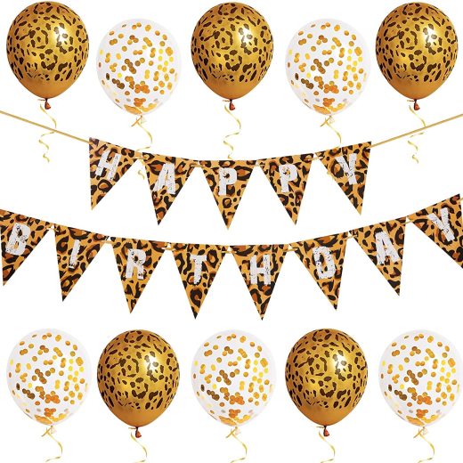 INCLUDES: 1set leopard design happy birthday banner, 98inch length strings ,10 leopard balloons, PERFECT FOR PICTURES-Use as elegant prop or decor …