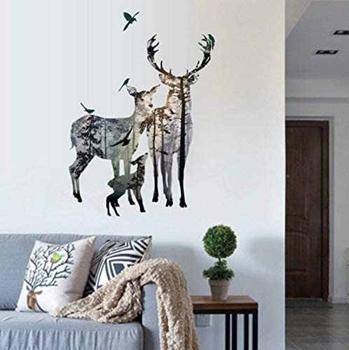 CHengQiSM Colorful Forest Deer and Bird Wall Decals Elk Wall Stickers Sika Deer for Bedroom Living Room Baby Room Stickers