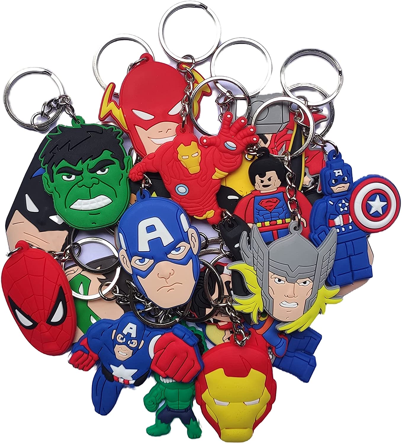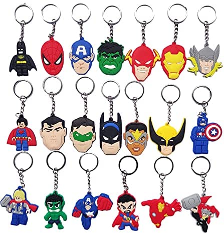 20pcs Keychain Key Tags Superhero Goodie Bag Stuffer Christmas Gift Holiday Charms for Kids Birthday Party Favors School Carnival Reward Prizes Decoration Supplies *100% new and high quality *Made of rubber, party favors supplies. Novel toys gifts for all ages. *Idea party favors: Absolutely great choice for Christmas party supplies, pinata fillers,game prizes and they are best prize box toys for classroom, and as party stocking stuffers and fillers. Not only for kids. These novelty stuff are also popular Valentine party favors toys. Students will love these as standout fashion items. *Multiple uses: Simply attached these keychains to the backpacks as decoration, or use as decoration for car keys, house keys, door keys The pattern is about 4cm-7cm in length.