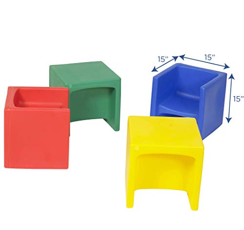 Childrens Factory-CF910-007 Childrenu2019s Factory Cube Chairs, 15u201d by 15u201d by 15u201d (Set of 4) u2013Bright Primary Colors u2013Versatile -Use as a Low or High Chair, Tableand Adult Seatu2013DurableandLightweightu2013Indoor or Outdoor Use